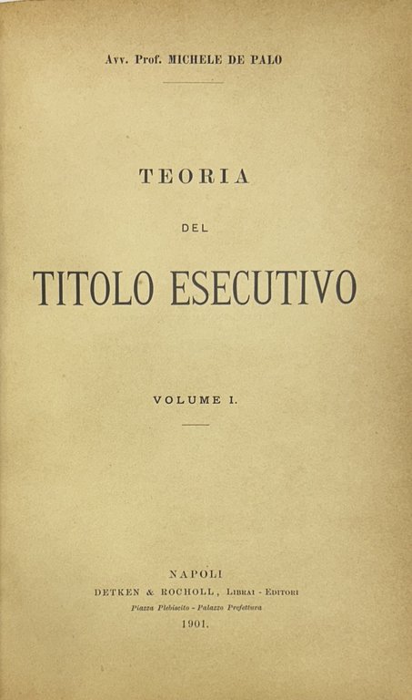 Teoria del titolo esecutivo. Vol. I (unico pubblicato) | Libri antichi e moderni | De Palo Michele