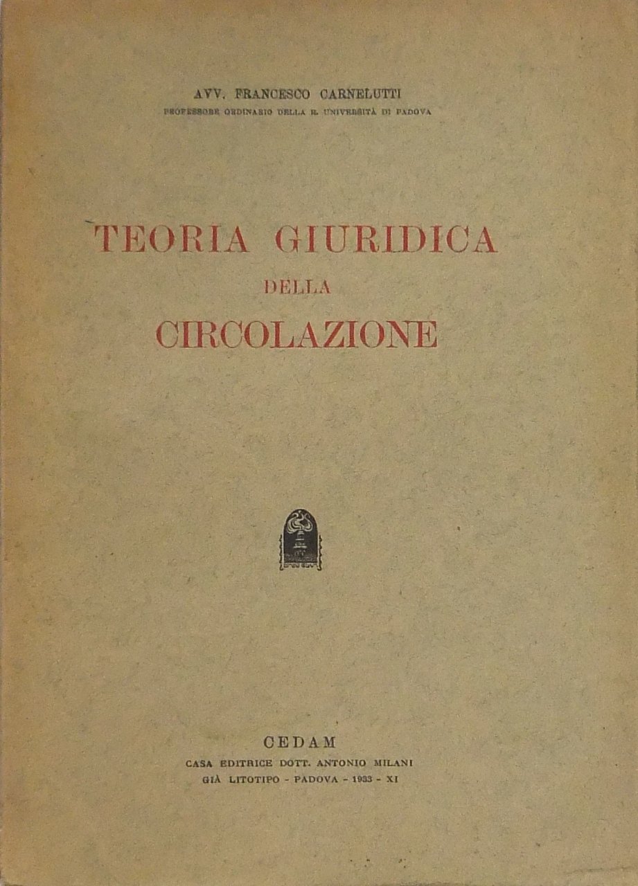 Teoria giuridica della circolazione | Libri antichi e moderni | Carnelutti Francesco (1879-1965)