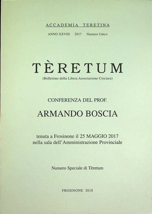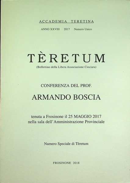 Teretum: Bollettino dell'Accadeima Teretina: A.XXVIII: Numero unico 2017. | Libri antichi e moderni |