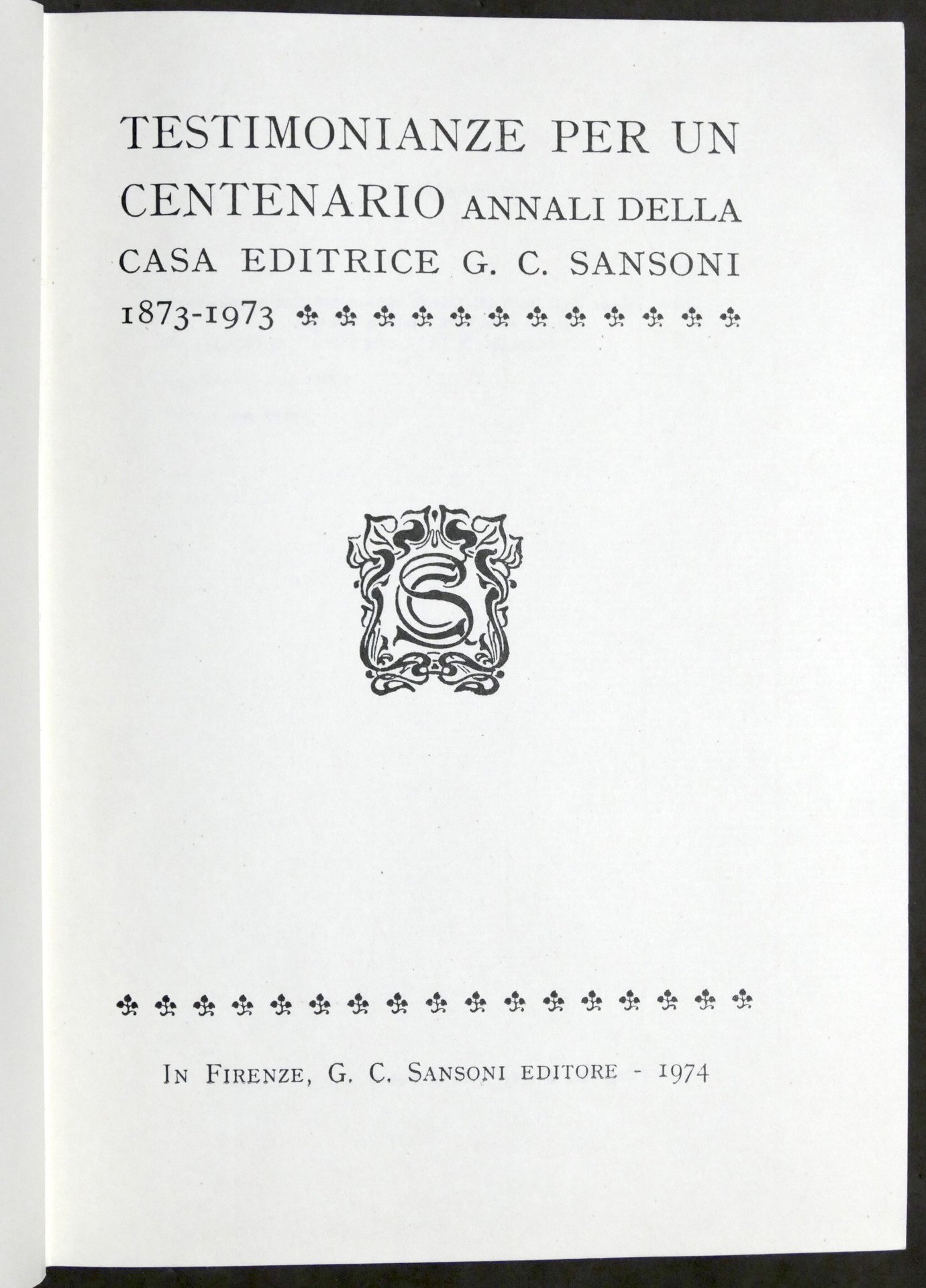 Testimonianze per un centenario Annali Casa Ed. Sansoni 1873-1973 - 1^ ed. 1974 | Libri antichi e moderni |