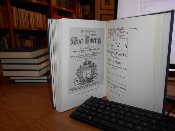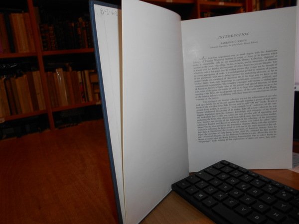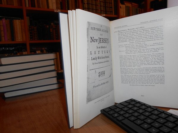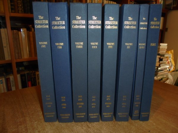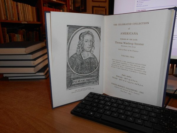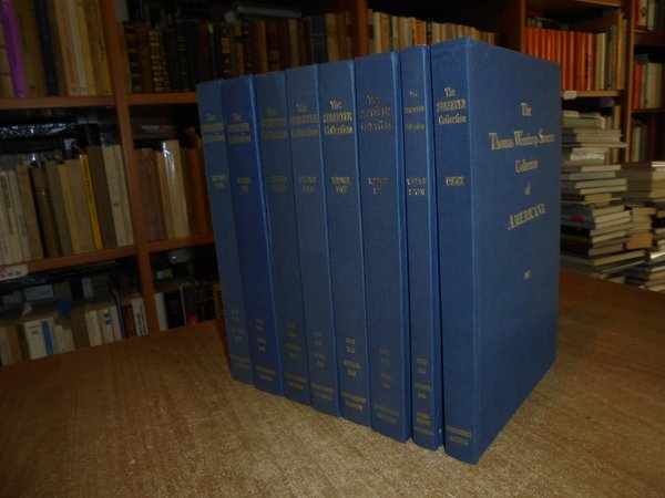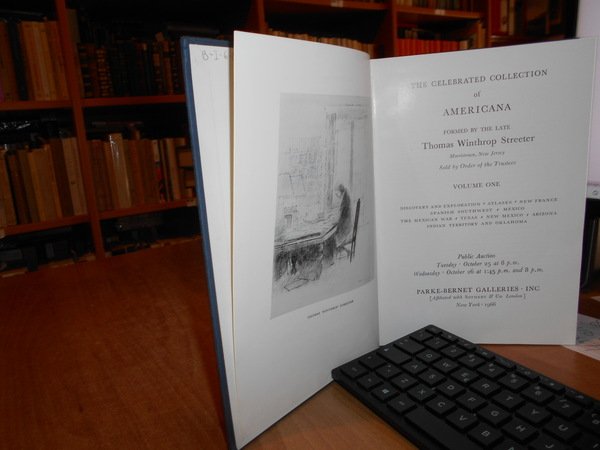 Thomas Winthrop Streeter. New York: Parke-Bernet Galleries, 1966-1970. STREETER, Thomas Winthrop (1883-1965) -- Jerry E. PATTERSON. The Celebrated Collection of Americana Formed by the Late Thomas Winthrop Streeter. 8 volumi in-8°, tela edit. bleu con titoli in oro sui piani e ai dorsi. (xvi), (x), (x), (x), (viii), (vii), (vii), per complessive 3002, (6) pp.; index: xix, 352 pp. L' opera perfettamente conservata è corredata da innumerevoli facsimili n.t. Nell' indice sono presenti i prezzi di tutti i volumi in dollari. Nel volume 5 e 6 due fogli volanti con i prezzi. Uff. B - I - 6 - 2