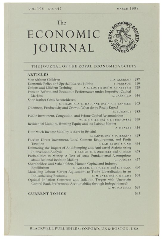 THE ECONOMIC JOURNAL - Vol. 108 No. 447 - March 1998. | Libri antichi e moderni | Royal Economic Society.