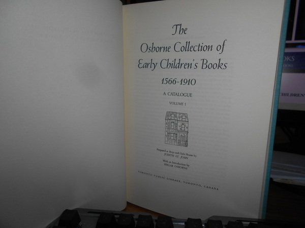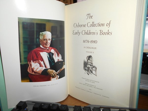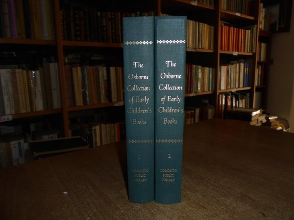 Wath an Introduction by Edgar Osborne. Toronto, Public Library, Toronto, Canada, 1975. The Osborne Collection of Early Children's Books 1566-1910. A catalogue. 2 volumi in-8°, m. tela con titoli in oro sui dorsi. xxiv, xii, per complessive 1138 pp. con illustrazioni nel testo e numerose tavole a colori e in bianco e nero fuori testo. Uff. B - II - 1