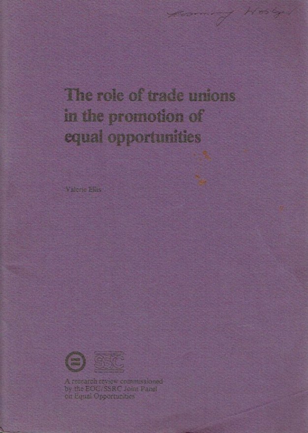 Name to front cover. No other marks or inscriptions. Creasing to lower corner of front covers. A very clean very tight copy with purple card covers and no bumping to corners. 77pp. Gender in the workplace and how trade unions play a vital role.