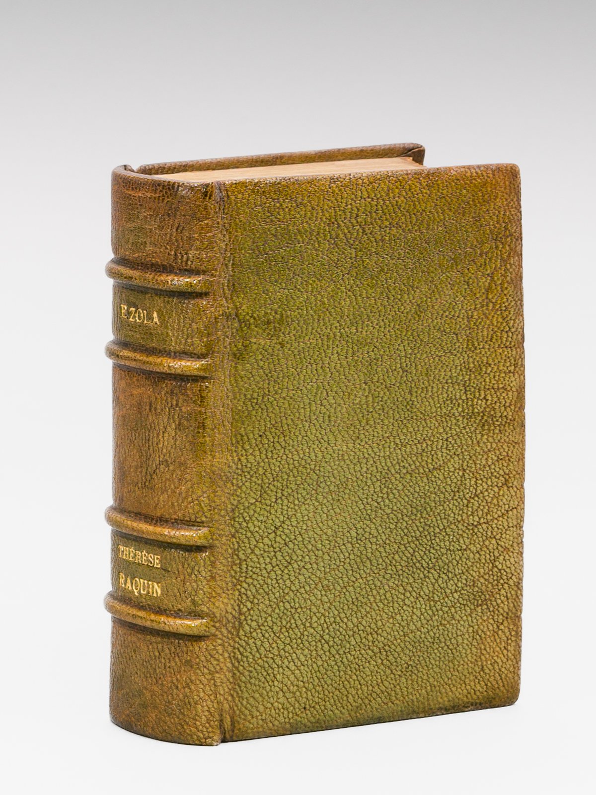 Un des 75 exemplaires sur papier de hollande (n°54), avec deux dessins de Guillaume Alaux, gravés à l'eau-forte par H. Manesse, 1 vol. in-32 reliure plein maroquin vert, dos à 4 nerfs, tête dorée, couvertures et dos conservés, collection Petite Bibliothèque-Charpentier, G. Charpentier et Cie, Paris, 1884, 2 ff., XII-404 pp. avec les 2 eaux-fortes hors texte avant la lettre Exemplaire du tirage sur hollande de l'un des 3 ouvrages d'Emile Zola parus dans la collection "Petite Bibliothèque-Charpentier". Bon état (petites usures angulaires sur qq. ff., rel. lég. frottée, bon exemplaire par ailleurs, ex-libris Roland Thibaut).