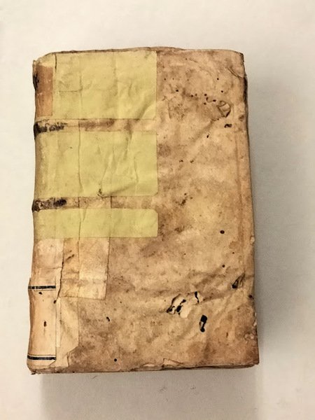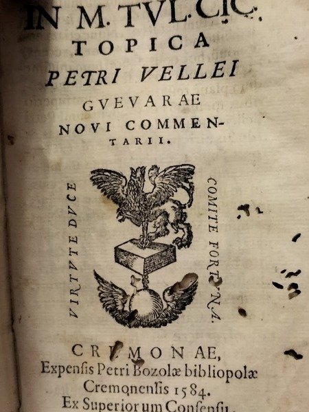 In 24°, p. perg. molle, pp. 687 + cc.nn. 4 + pp. 166 di "Petri Vellei Guevarae in M. Tull. Cic. Topica commentarius". D. rinforzato. 177/178 con errore di impaginazione e numeroazione.