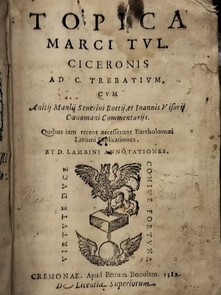 Topica Marci Tul. Ciceronis ad C. Trebatium. Cum Anitii Manlii Severini Boetii, & Joannis Visorii Coenomani Commentariis. Quibus iam recens accesserunt Bartholomaei Latomi explicationes et Lambini annotationes. | Libri antichi e moderni | Ciceronis Marci Tul.