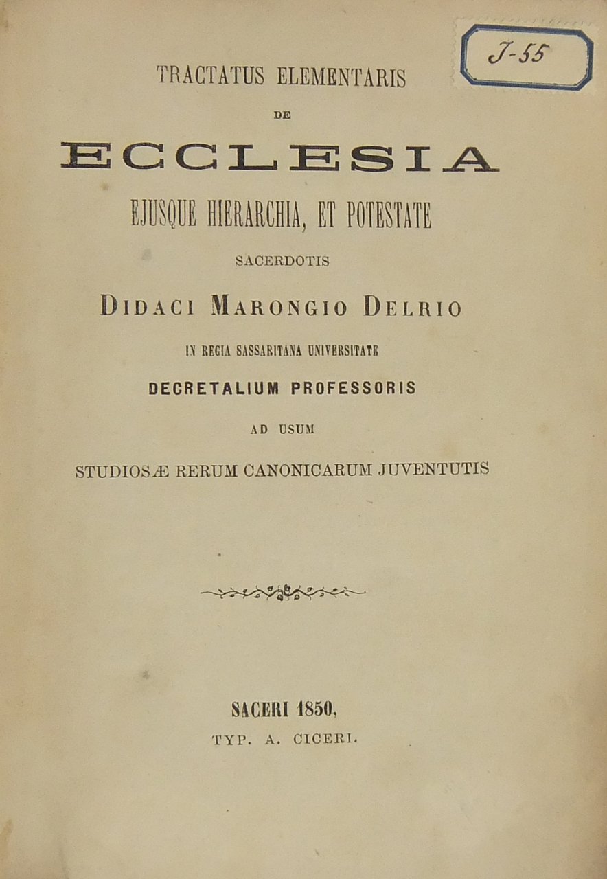 Tractatus elementaris de ecclesia ejusque hierarchia et potestate | Libri antichi e moderni | Marongio Delrio Diego