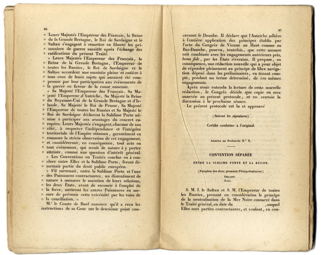 Traité de paix signé à Paris le 30 mars 1856 entre la Sardaigne, l'Autriche, la France, le Royaume Uni de la Grande Bretagne et d'Irlande, la Prusse, la Russie et la Turquie. Avec les conventions qui en font partie, les protocoles de la conférence et la déclaration sur les droits maritimes en temps de guerre | Libri antichi e moderni | GUERRA DI CRIMEA - TRATTATO DI PACE