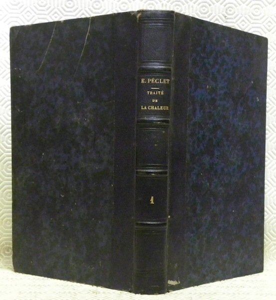 Traité de la chaleur considérée dans ses applications. Troisième édition entièrement refondue. Tome Premier: Livre premier, de la combustion et des combustibles; Livre II, écoulement des gaz comprimés; Livre III, des cheminées; Livre IV, mouvements de l’air produits par des machines ou par des jets de vapeur; Livre V, des foyers; Livre VI, émission et transmission de la chaleur; Note, tables et renseignements relatifs aux propriétés physiques des corps. | Libri antichi e moderni | Peclet, E.