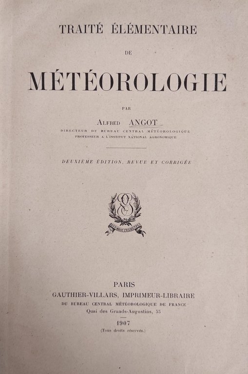TRAITE ELEMENTAIRE DE METEOROLOGIE | Libri antichi e moderni | ANGOT ALFRED, ,ANGOT ALFRED