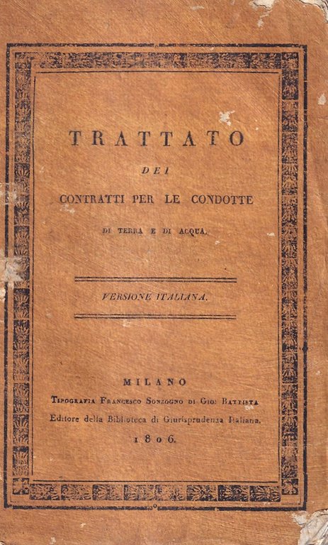 Trattato dei contratti per le condotte di terra e di acqua | Libri antichi e moderni | Hutteau (figlio)