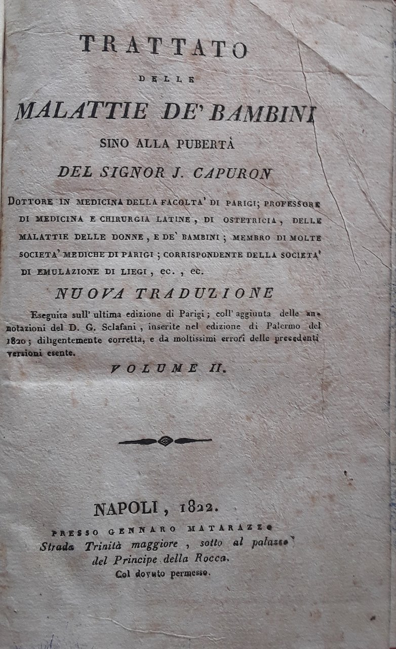 Trattato delle malattie de bambini. Volume II | Libri antichi e moderni | J. Capuron, ,J. Capuron
