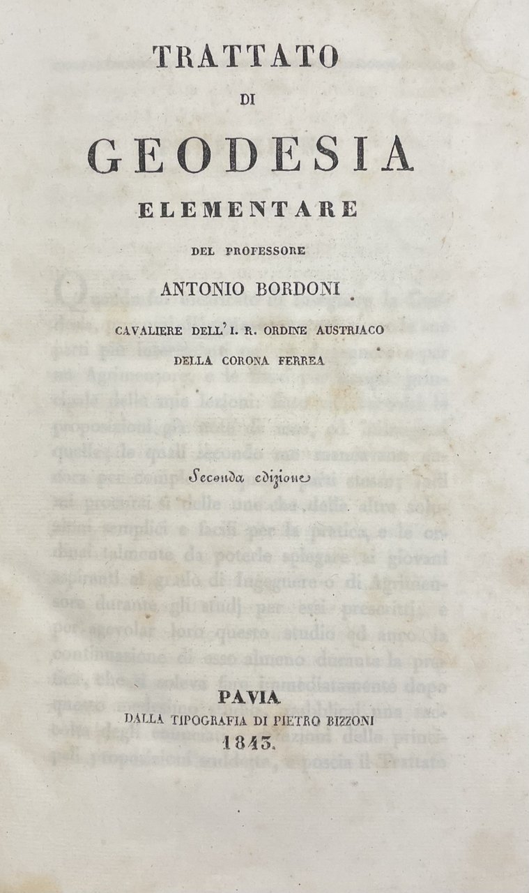 TRATTATO DI GEODESIA ELEMENTARE | Libri antichi e moderni | BORDONI ANTONIO, ,BORDONI ANTONIO