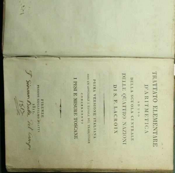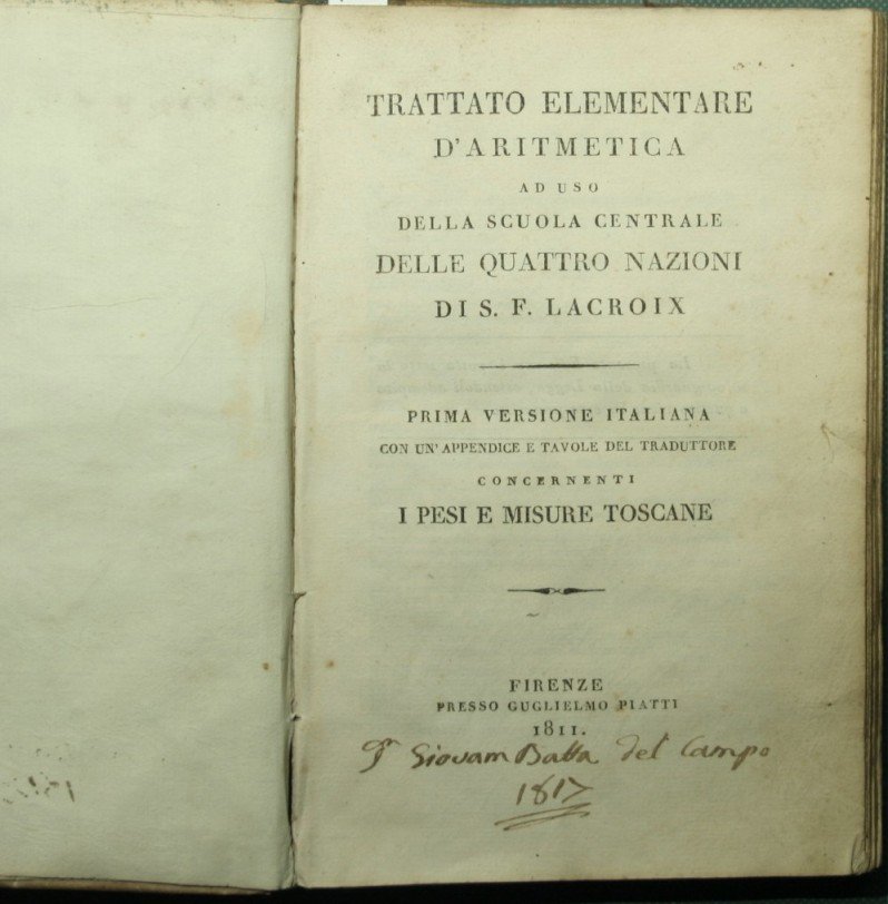 Trattato elementare d'aritmetica ad uso della scuola centrale delle quattro nazioni | Libri antichi e moderni | Lacroix S. F.