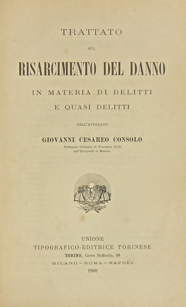 Trattato sul risarcimento del danno in materia di delitti e di quasi delitti | Libri antichi e moderni | Cesareo Consolo Giovanni