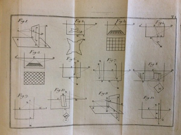 In-8 p., mz. pelle coeva (abras. ai piatti), fregi e titolo oro al dorso, pp. XXXII,230,(2), con ritratto dell'A. e 6 tavole fuori testo, più volte ripieg., inc. in rame. Seconda edizione. Cfr. Gamba,2508: "E' uno dei libri meglio scritti che noi abbiamo in questa materia. In questa ristampa aggiuntivi l'Elogio dell'A., tradotto dal latino, di L. Palcani per opera di G.A. Maggi; ed un Catalogo delle sue Opere" - Riccardi,I,655: "E' uno dei più pregevoli trattati di prospettiva". Ben conservato, intonso.