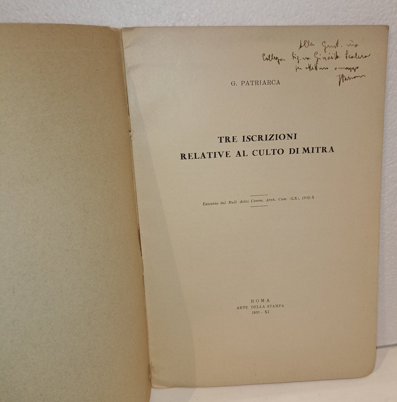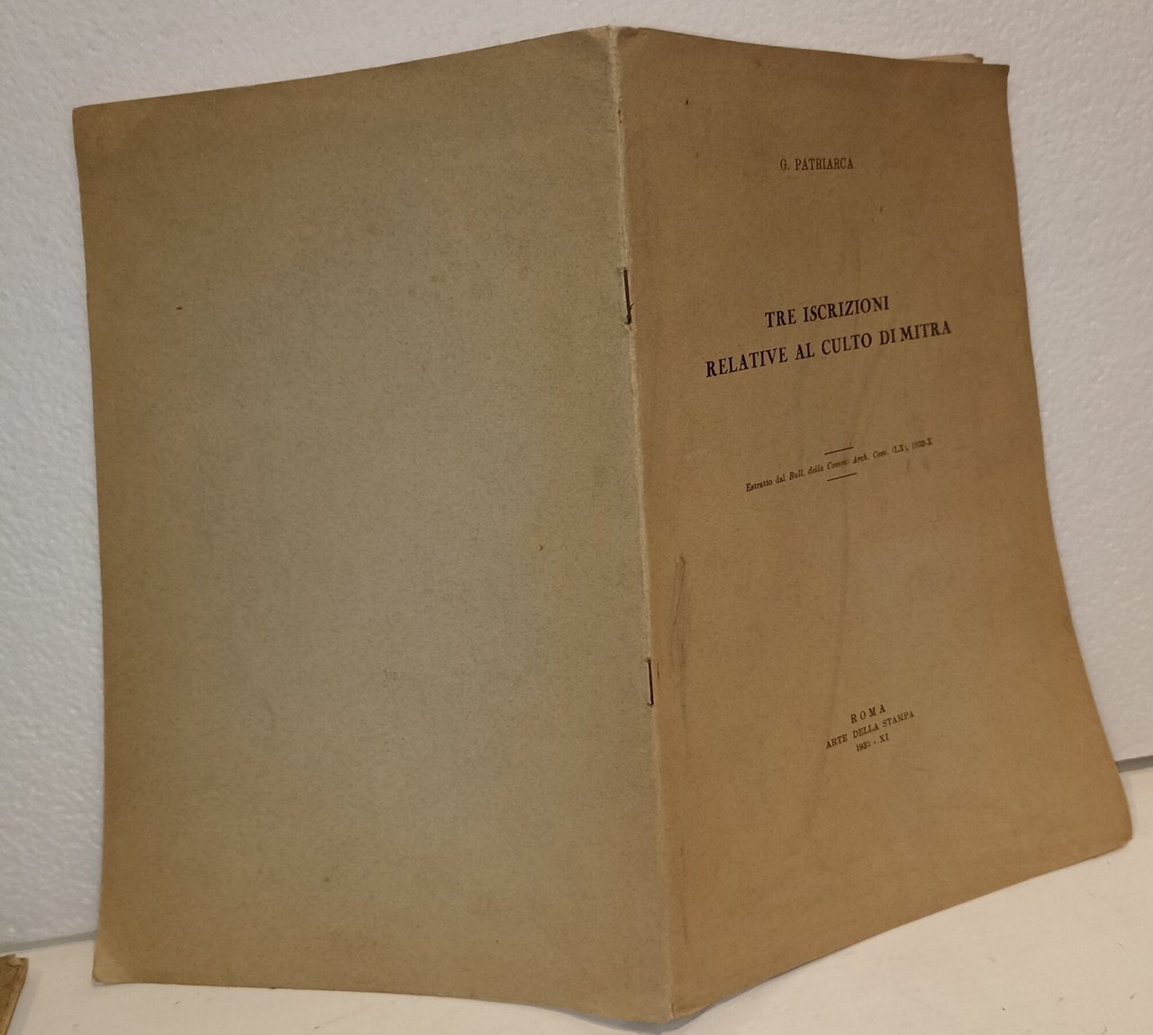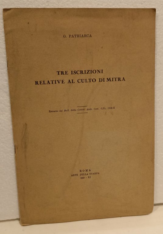 Tre iscrizioni relative al culto di Mitra | Libri antichi e moderni | Patriarca, G.