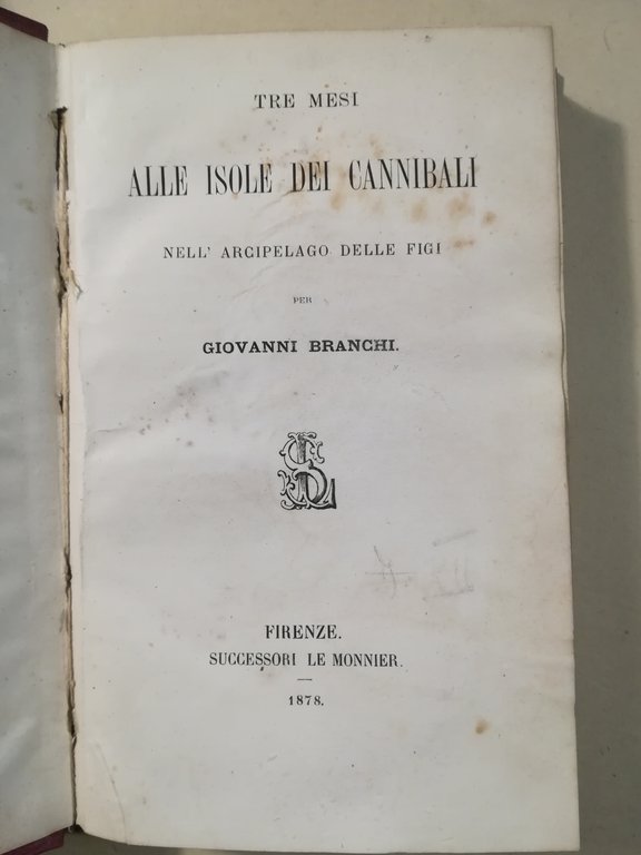 Tre mesi alle isole dei cannibali nell'Arcipelago delle Figi | Libri antichi e moderni | BRANCHI, Giovanni