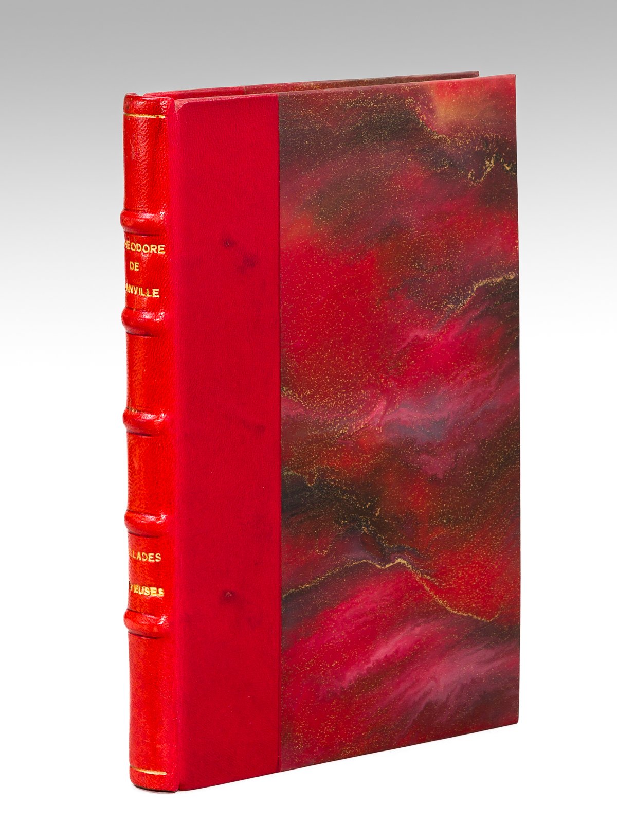 1 vol. in-12 reliure postérieure demi-basane rouge, dos à 5 nerfs, couvertures conservées, Alphonse Lemerre, Paris, 1873, 2 ff., III-151 pp. Edition originale. On trouvera à la fin de ce charmant recueil les partitions de Jules Cressonnois pour plusieurs ballades dont la "Ballade des belles Châlonnaises". Bon exemplaire complet des couvertures d'origine (ex-libris en garde). Vicaire, I, 273