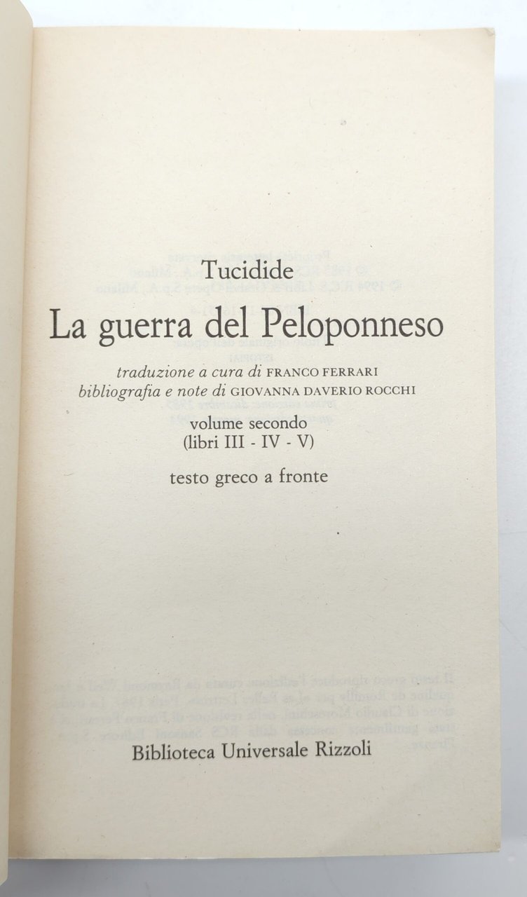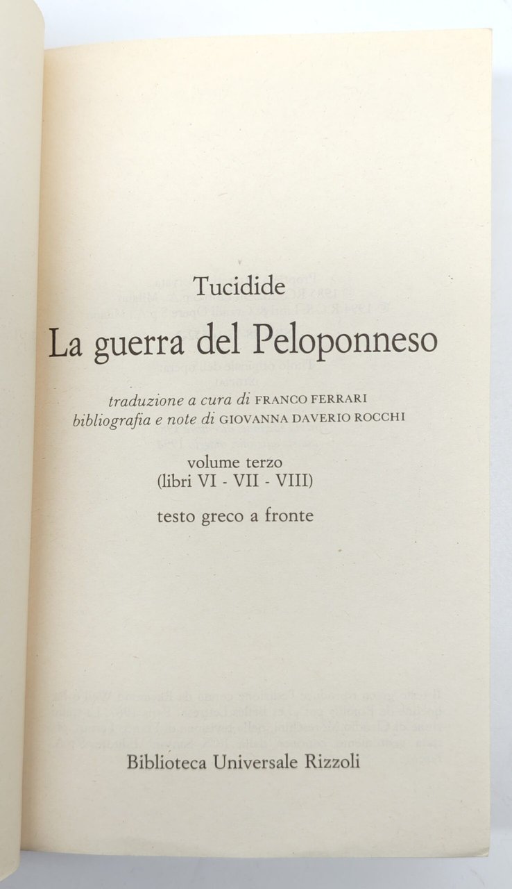 Tucidide La guerra del Peloponneso 3 volumi BUR Rizzoli 1994 4° edizione | Libri antichi e moderni | Tucidide
