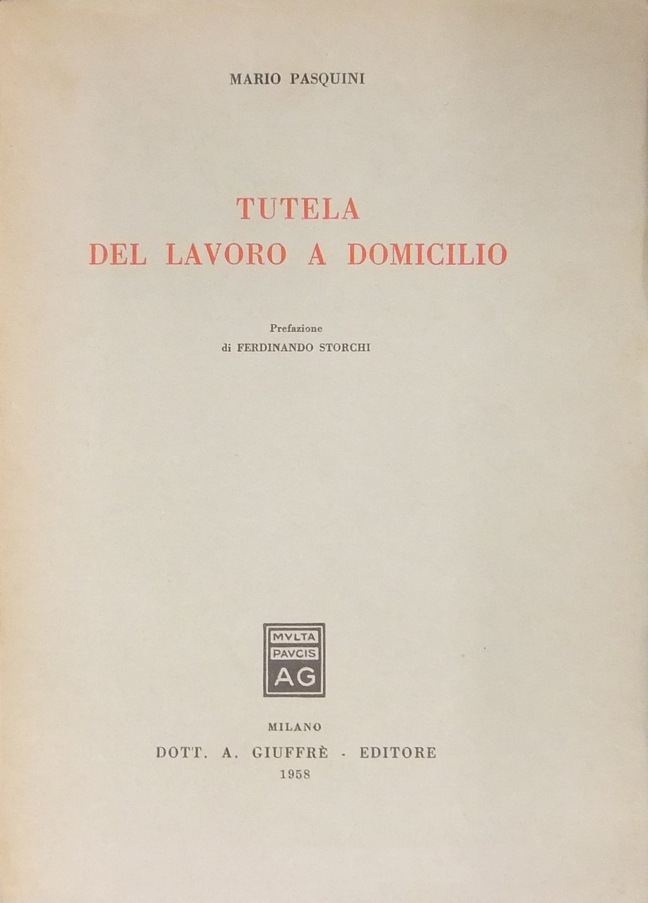 Tutela del lavoro a domicilio. Prefazione di Ferdinando Storchi | Libri antichi e moderni | Pasquini Mario