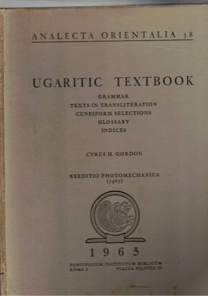 Ugaritic Textbook. Vol. I-III. Grammar; Texts in transliteration cuneiform selections; Glossary indices. | Libri antichi e moderni | Gordon Cyrus H.