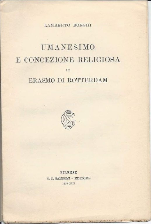 UMANESIMO E CONCEZIONE RELIGIOSA IN ERASMO DI ROTTERDAM (1935) | Libri antichi e moderni | Borghi Lamberto