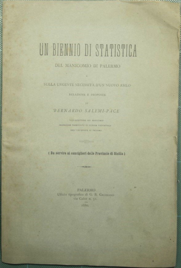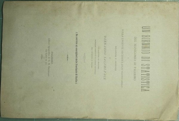 Un biennio di statistica del manicomio di Palermo e sulla urgente necessità d'un nuovo asilo | Libri antichi e moderni | Salemi Pace Bernardo