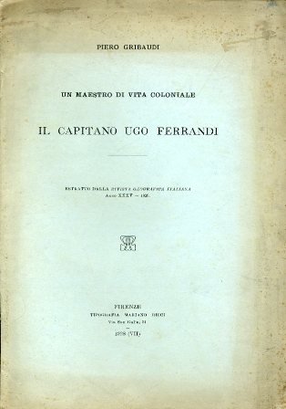 Un maestro di vita coloniale. Il Capitano Ugo Ferrandi. Estratto dalla Rivista Geografica Italiana. Anno XXXV - 1928