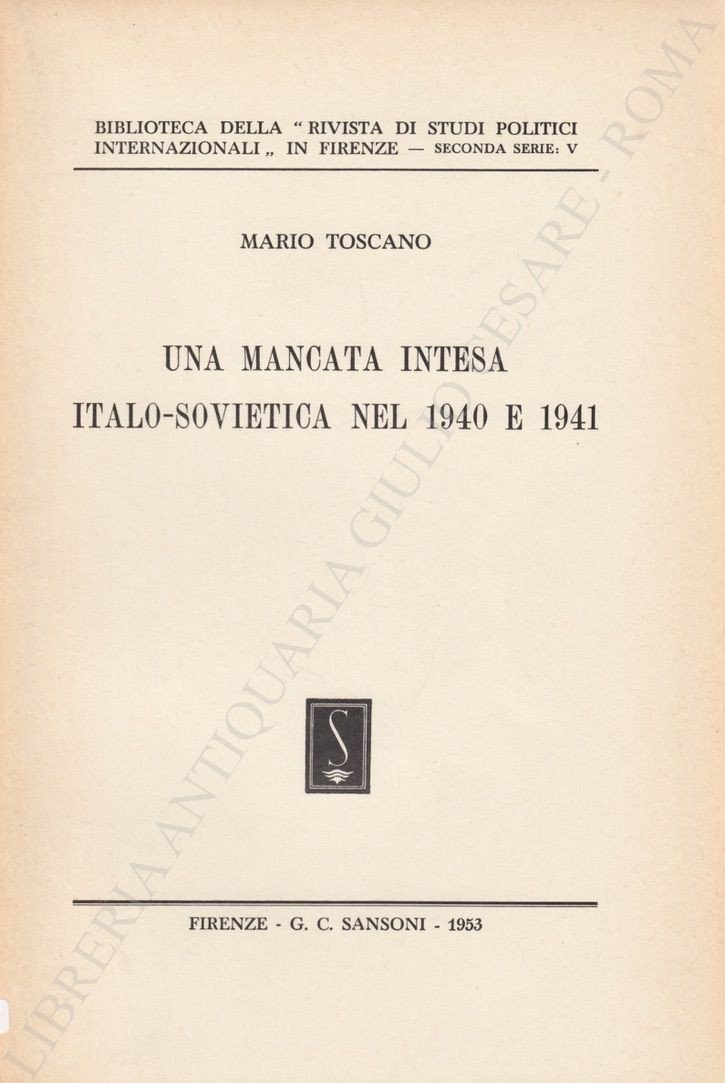 Una mancata intesa italo-sovietica nel 1940 e 1941 | Libri antichi e moderni | Toscano Mario (1908-1968)
