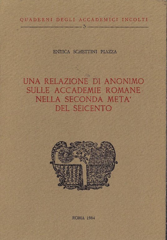 Una relazione di anonimo sulle accademie romane nella seconda metà del Seicento | Libri antichi e moderni | Enrica Schettini Piazza, ,Enrica Schettini Piazza
