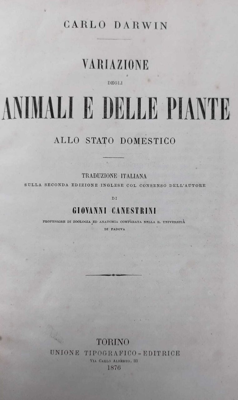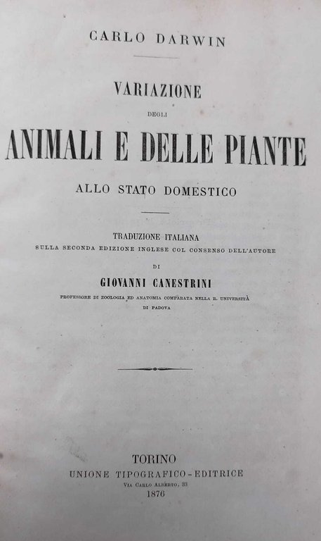 VARIAZIONE DEGLI ANIMALI E DELLE PIANTE ALLO STATO DOMESTICO | Libri antichi e moderni | DARWIN CHARLES, ,DARWIN CHARLES