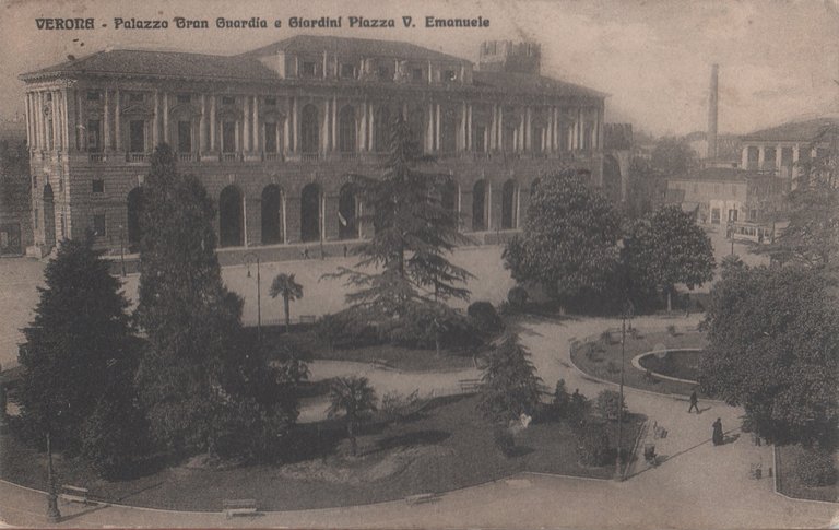Verona. Palazzo Gran Guardia e Giardini Piazza V. Emanuele. viaggiata 1924