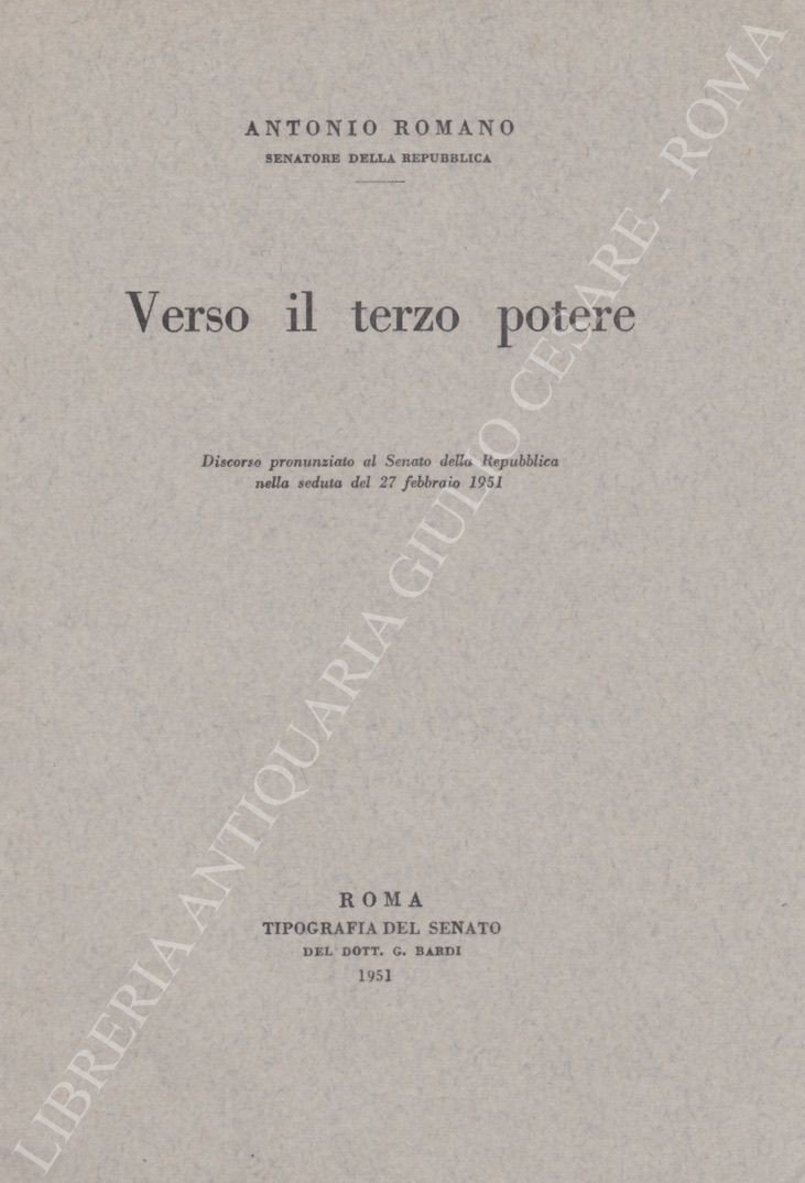 Verso il terzo potere. Discorso pronunziato al Senato della Repubblica nella seduta del 27 febbraio 1951 | Libri antichi e moderni | Romano Antonio