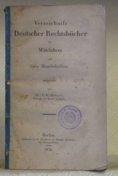 Verzeichnifs Deutscher Rechtsbücher des Mittelalters und ihrer Handschriften. | Libri antichi e moderni | Homeyer, C. G.