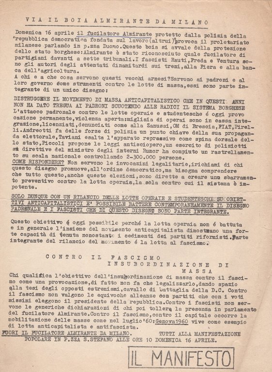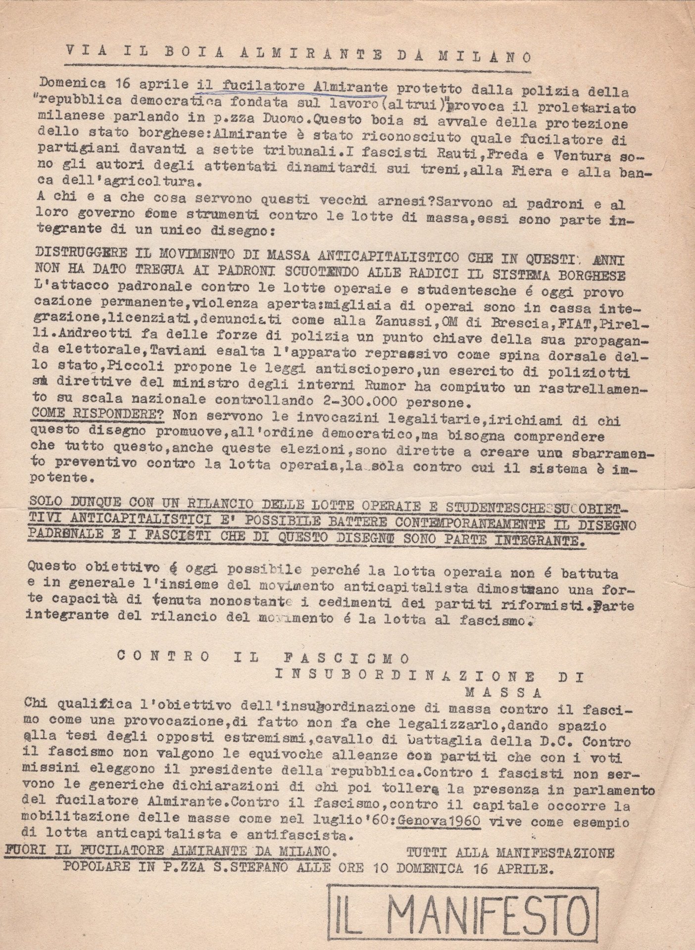 Via il boia Almirante da Milano. Volantino | Libri antichi e moderni | Il Manifesto