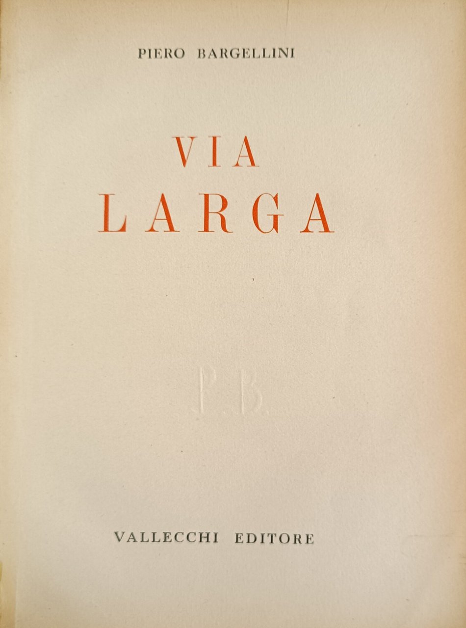 VIA LARGA | Libri antichi e moderni | BARGELLINI PIERO, ,BARGELLINI PIERO