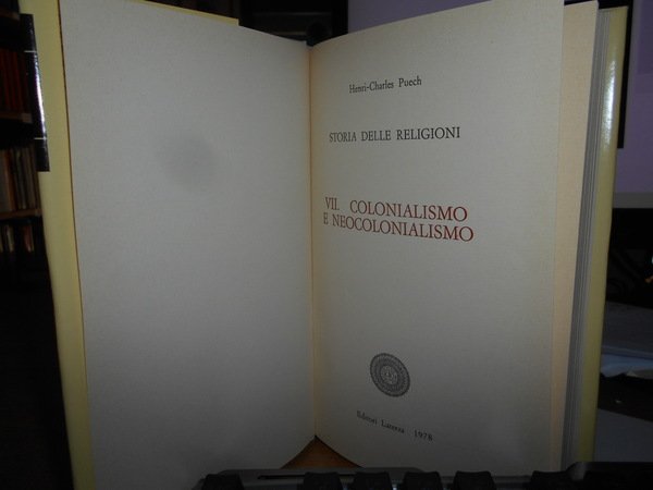 HENRI-CHARLES PUECH. Bari, Laterza Editori, 1978. VII. Storia delle Religioni. Colonialismo e Neocolonialismo. In-8° piccolo, cartonato edit. con titolo al dorso, sovracopertina ill. a col. 390, (1) pp. Neg. mob. bianco comput.