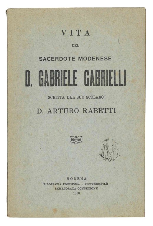 Vita del sacerdote modenese D. Gabriele Gabrielli. | Libri antichi e moderni | RABETTI, Arturo