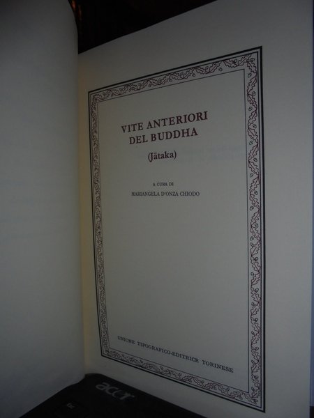 A cura di Mariangela D' Onza Chiodo. Torino, U.T.E.T., 1992. Vite anteriori del Buddha. Jātaka. In-8°, tela edit. con fregi e titolo in oro al dorso, sovracopertina ill. a col. 496 pp. con 6 tavole fuori testo. In stato di nuovo. Uff. TV. mob. nostro