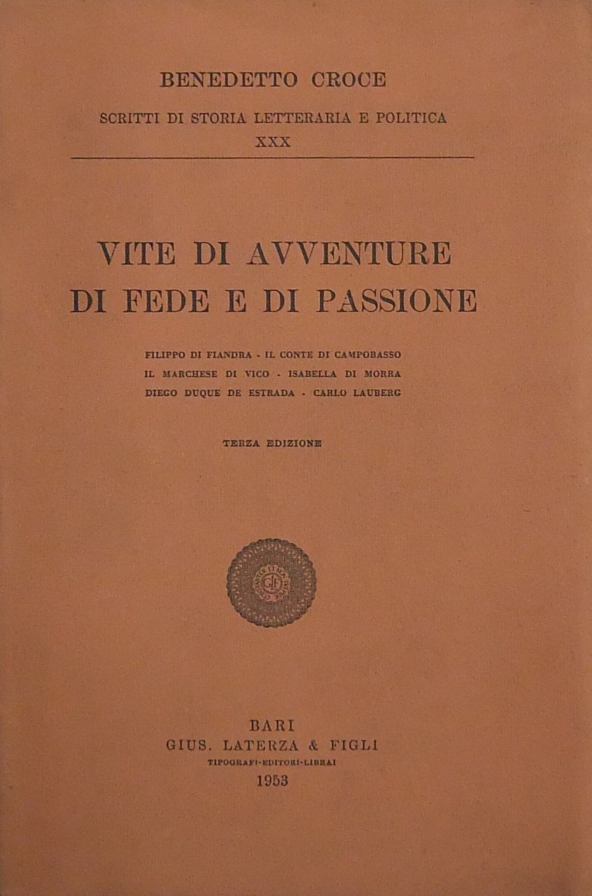 Vite di avventure di fede e di passione. Filippo di Fiandra. Il Conte di Campobasso. Il Marchese di Vico. Isabella di Morra. Diego duque de Estrada. Carlo Lauberg | Libri antichi e moderni | Croce Benedetto (1866-1952)