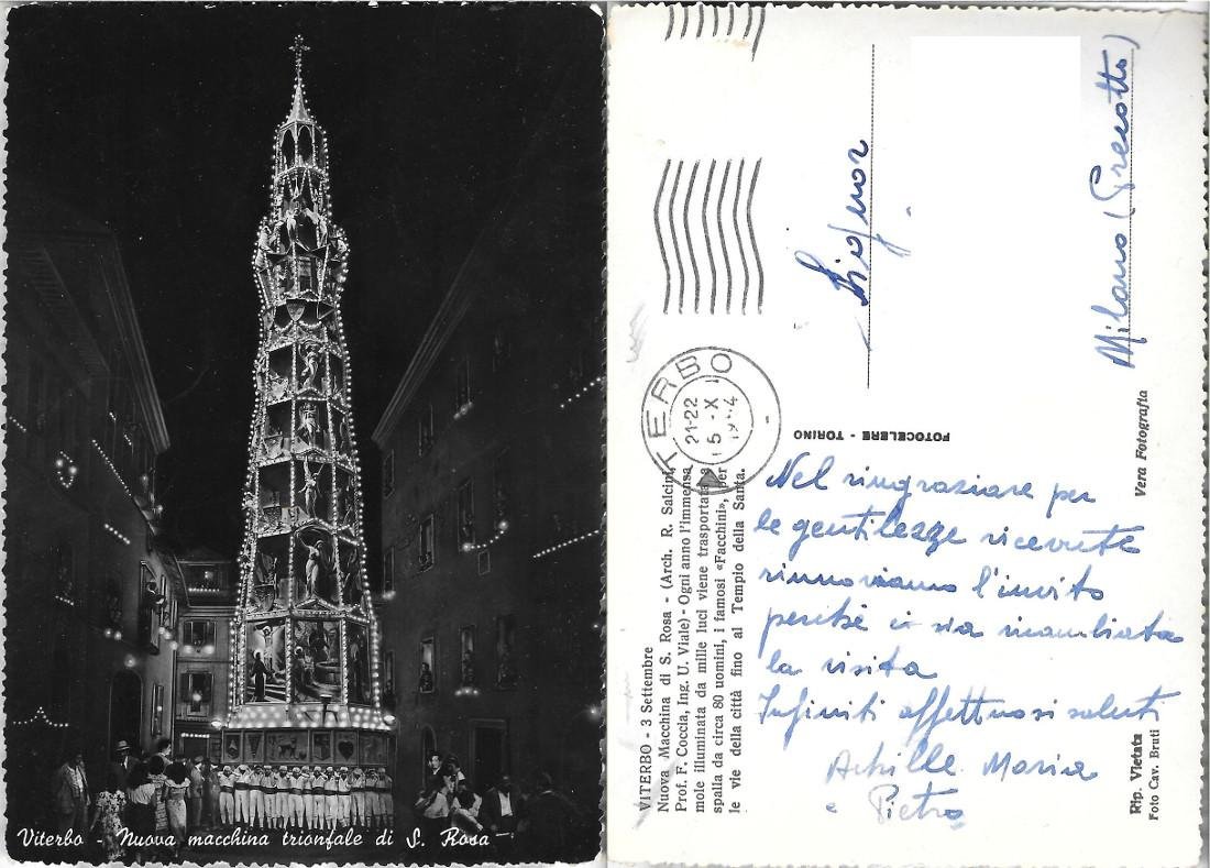 Viterbo. Nuova macchina triofale di S. Rosa. Viaggiata 1954
