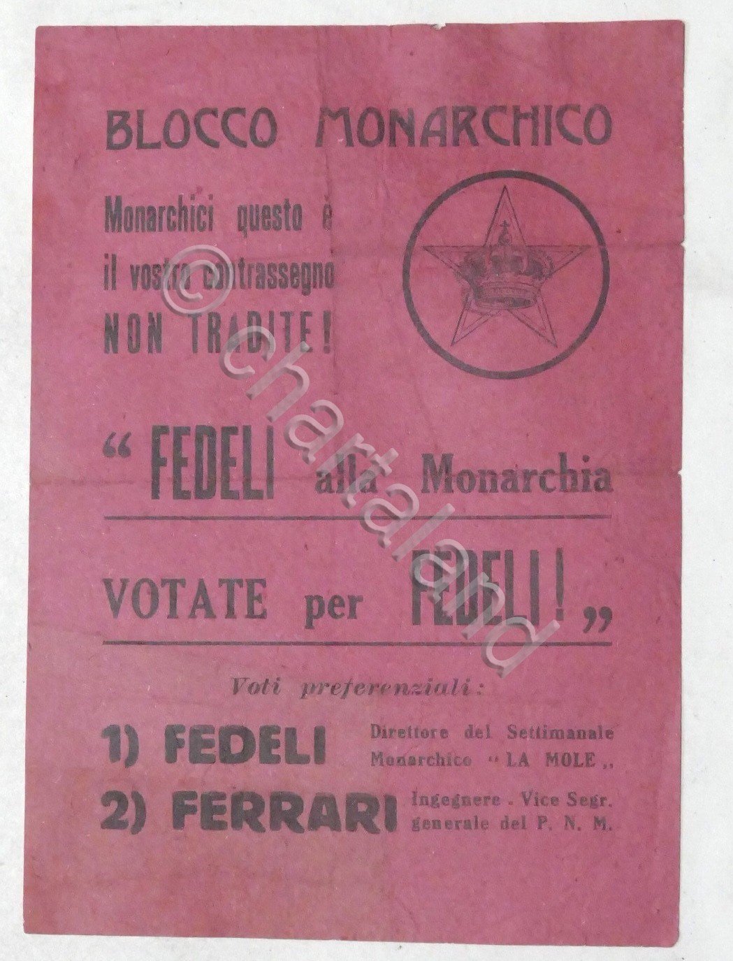 Volantino Blocco Monarchico - Fedeli alla Monarchia - Elezioni Politiche 1948 | Libri antichi e moderni |