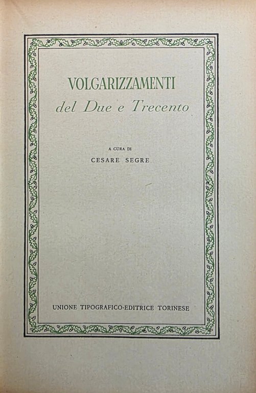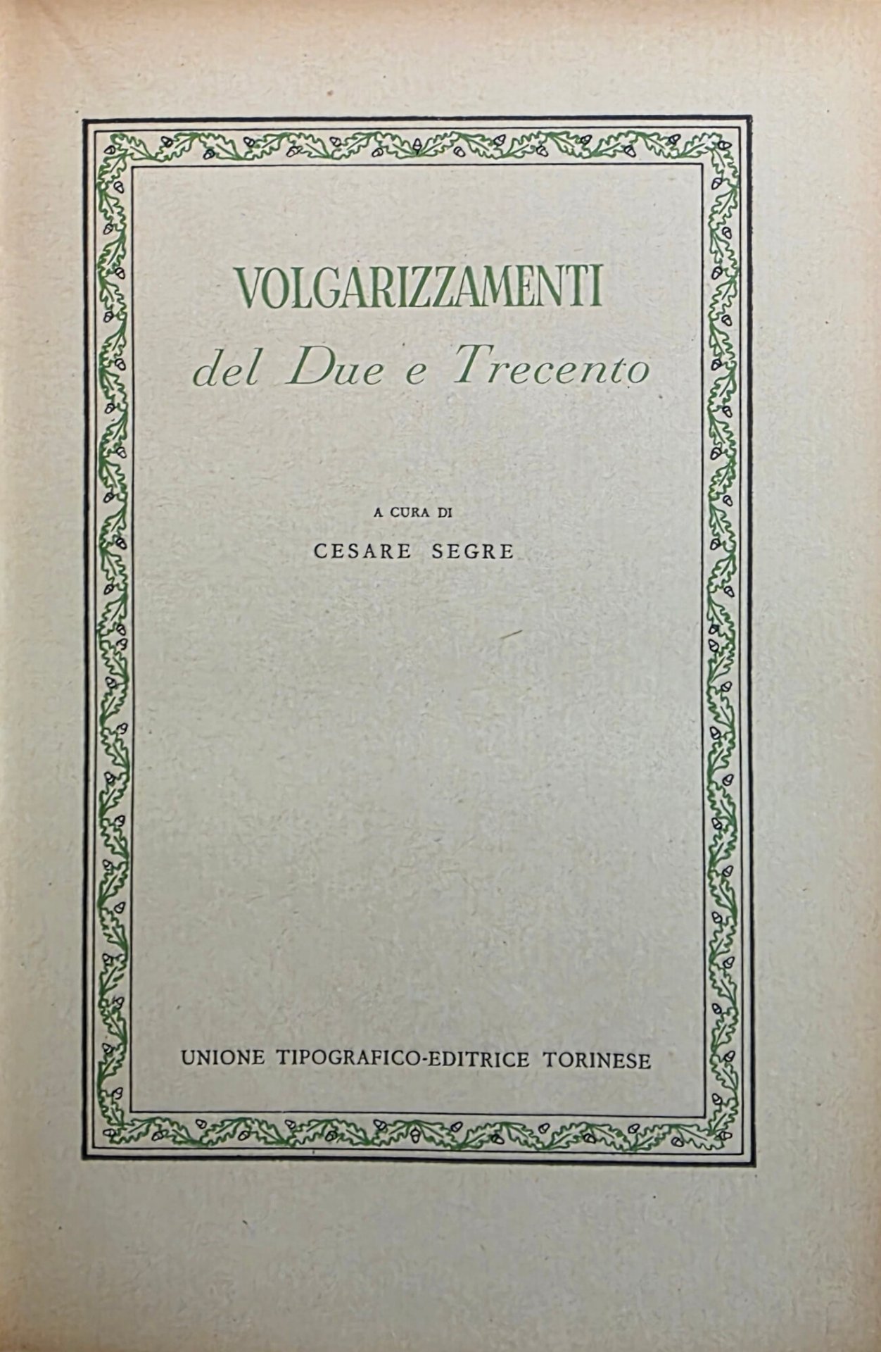 VOLGARIZZAMENTI DEL DUE E TRECENTO | Libri antichi e moderni | SEGRE CESARE (a cura di), ,SEGRE CESARE (a cura di)