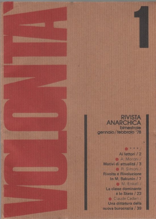 Volontà. Rivista Anarchica. n. 1 gennaio/febbraio 1978. Anno XXXII