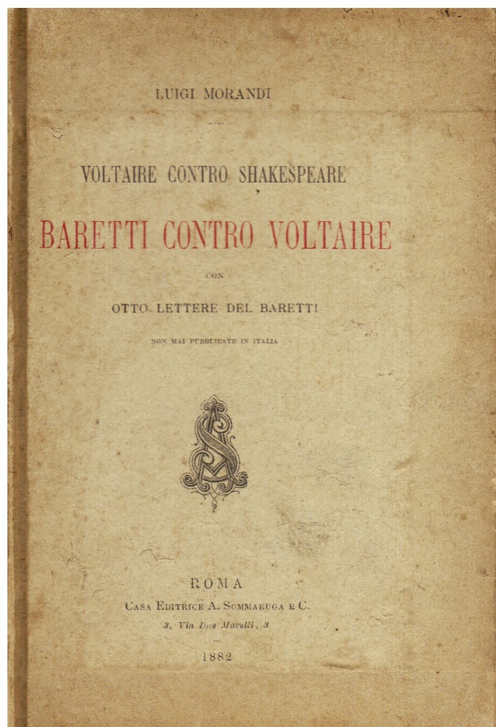 Voltaire contro Shakespeare - Baretti contro Voltaire. Con otto lettere del Baretti non mai pubblicate in Italia | Libri antichi e moderni | Morandi Luigi