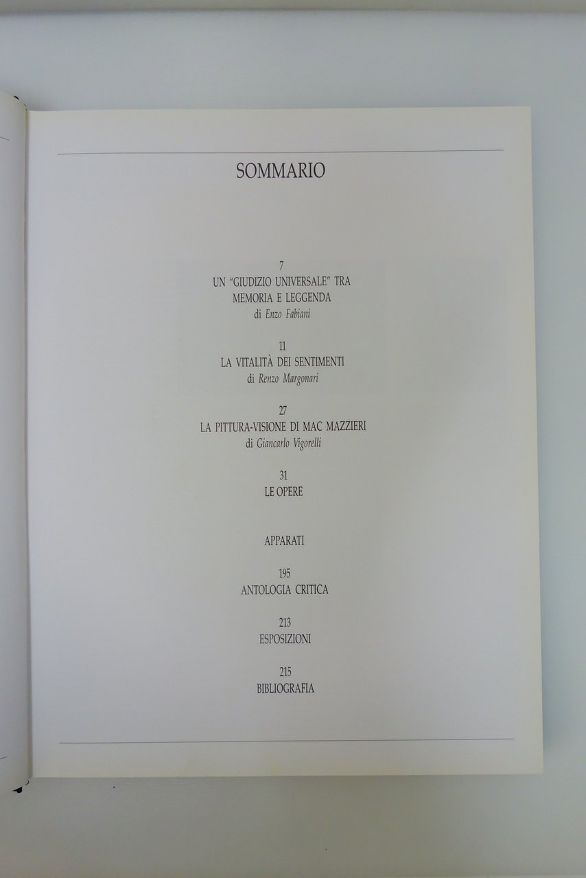 Mondadori, Milano 1997; cm 32,5x25; pp. 224 con numerosissime ill. a colori fuori t. e alcune in b/n nel t.; tutta tela ed. con titolo impresso in argento al dorso, sovraccoperta ed. ill. a colori. Volume corredato della custodia ed. in cartoncino muto. Acclusi due non comuni cataloghi della Galleria La Sfera di Modena, uno della personale di Mac Mazzieri allestita nel 1969 (testo di Renzo Margonari), l'altra di collettiva a cui partecipò anche Mac Mazzieri, nel 1970.