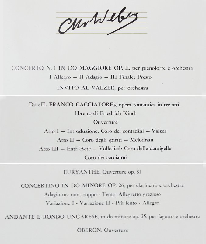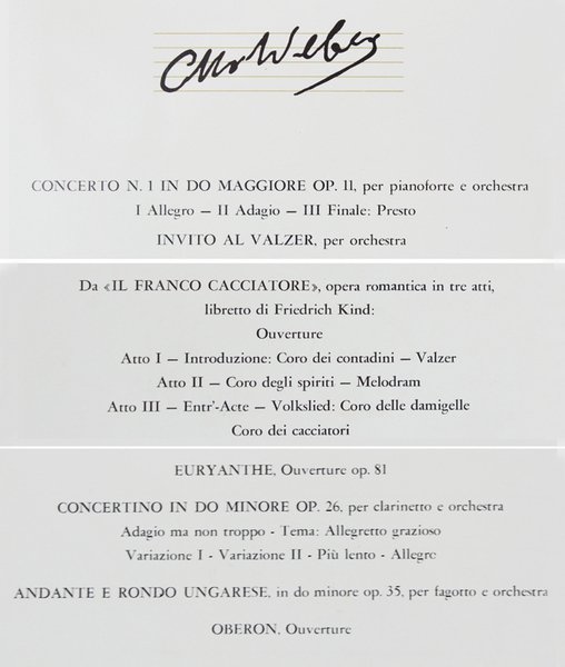 WEBER CARL MARIA VON WEBER - 3 dischi NUOVI nei fascicoli NUOVI: (Fabbri I Grandi Musicisti N. 112 - 113 - 114). | Libri antichi e moderni | Von Weber Carl Maria.