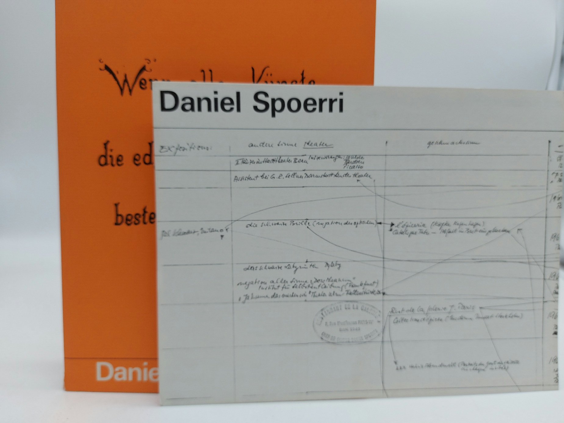 In 8 (cm 20,5 x 27), pp. (44) con riproduzioni fotografiche in bianco/nero. Brossura editoriale. Conservato all'interno poster-catalogo ripiegato (aperto misura cm 40 x 54) con elenco delle opere in mostra e appunti da taccuino dell'artista riprodotti in facsimile di scrittura al recto del foglio. Catalogo della mostra di Daniel Spoerri svoltasi allo Stedelijk Museum di Amsterdam tra aprile e giugno 1971. Il titolo della mostra, in cui l'artista indagava il rapporto tra arte e cibo, riprendeva il detto "Quando tutte le arti periscono, la nobile arte culinaria persiste". Cfr. The Taste of Art: Cooking, Food, and Counterculture in Contemporary Practices", 2017. Cecilia Novero, Antidiets of the Avant-garde: From Futurist Cooking to Eat Art, 2010.